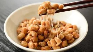 Натто – это традиционное японское блюдо, приготовленное из вареных и ферментированных соевых бобов. В результате брожения между бобами образуются «нити», которые сначала приобретают специфичный сладковатый, а затем довольно пряный запах. Натто используется как в качестве гарнира, так и основного блюда, и даже имеет антибактериальное действие.