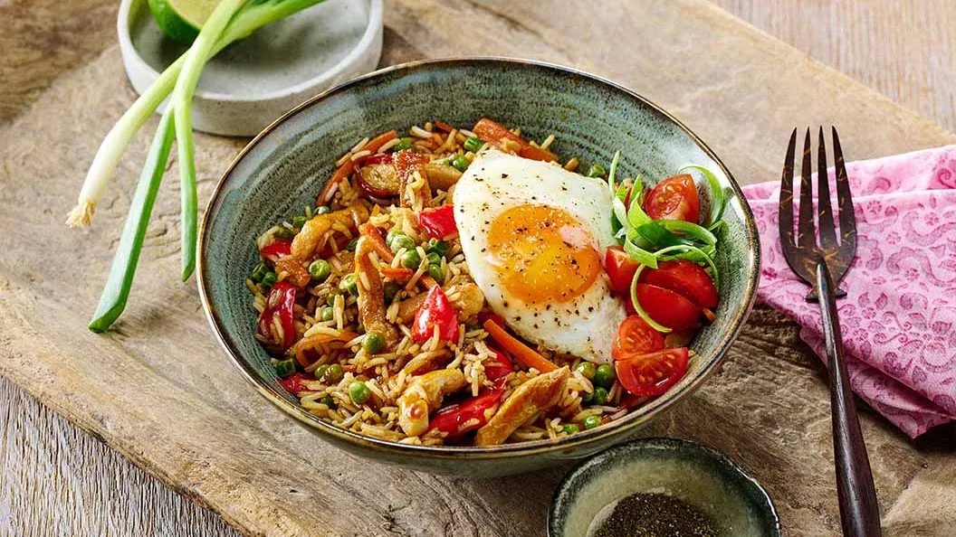 Сварили слишком много риса? Не волнуйтесь — есть много вкусных способов его использовать! Попробуйте острый жареный рис с овощами и хариссой или классическое блюдо наси горенг.