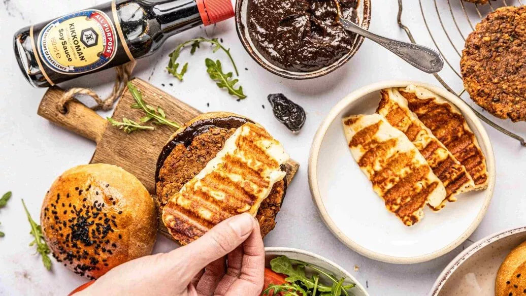 Попробуйте этот вегетарианский бургер с котлетой из фасоли и чечевицы с домашней булочкой и барбекю соусом из копченой сливы. Вкусная и питательная альтернатива традиционным мясным бургерам.