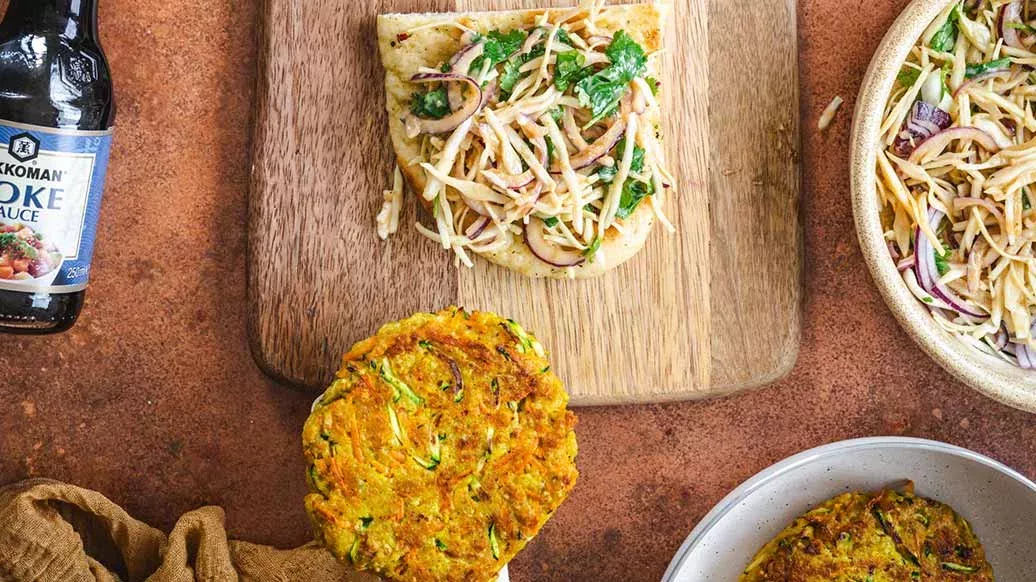Придайте своим бургерам индийский колорит! У этой котлеты уникальная текстура, а благодаря пшену, моркови и кабачкам этот бургер полезнее мясного. И салат с пикантным миксом соуса Поке Kikkoman, йогурта и карри перенесет вас на оживленные улицы Мумбаи.