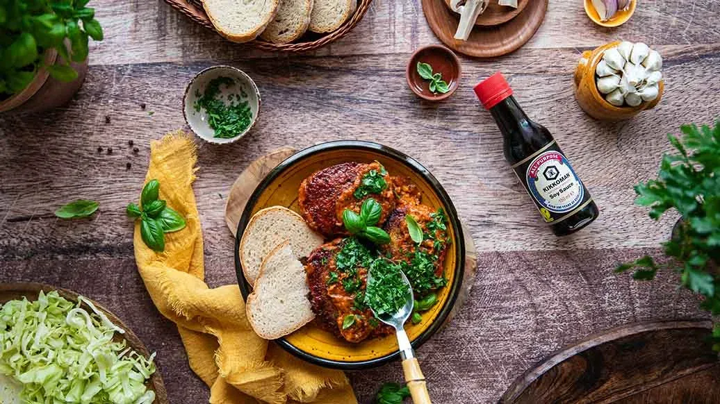 Смешайте пассату с водой, соевым соусом Kikkoman, сливками, сахаром, травами и специями. Полейте этим соусом голубцы и поставьте блюдо в предварительно разогретую до 180°C (верхний и нижний нагрев) духовку. Накройте крышкой и запекайте 30 минут, затем снимите крышку и запекайте еще 15 минут.