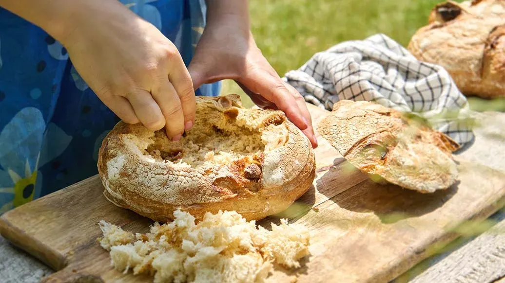 1 небольшая буханка хлеба – 50 г свежего шпината – 80 г сыра лабне – 60 г смеси орехов (например, миндаля, грецкого ореха или кешью), рубленых