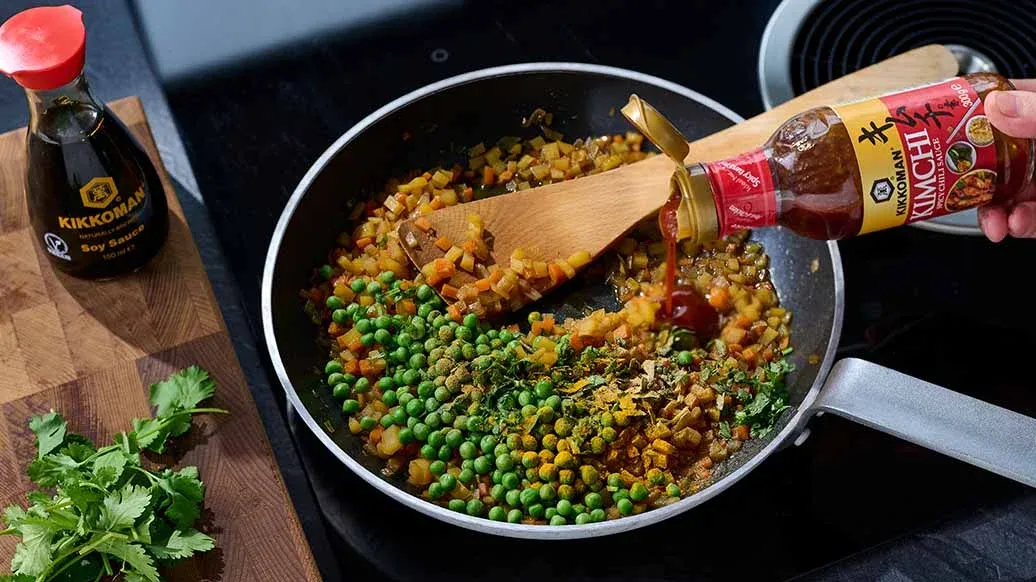Подавайте с соевым соусом Kikkoman или, для остроты, с чили соусом Кимчи Kikkoman.