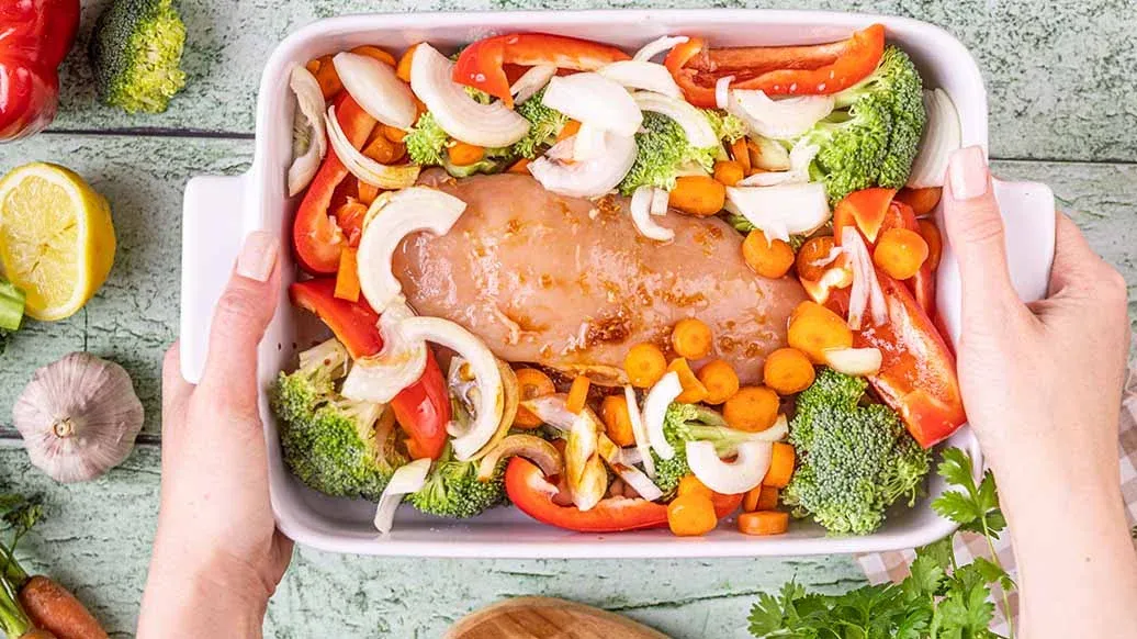 Сочное куриное филе, глазированное соевым соусом Kikkoman, мёдом, имбирём и лимоном, подается с запечёнными овощами. Привлекательное и аппетитное блюдо, идеальное для быстрого, но необычного домашнего ужина.